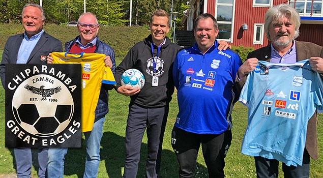 Erlandsson Bygg & Grunden Bois åkte till ÖiS-Gården och lämnade nya fina fotbollar, till ÖIS projekt i Zambia😃 Vi skänkte även gamla Bois-matchställ. Vi ser fram emot när grejerna kommer till nytta & glädje, inom projekt Chiparamba! På bilden: Joacim Nordh, Lennart Bäckman, Markus Brink, Christer Reinikainen & Dan Allbäck.